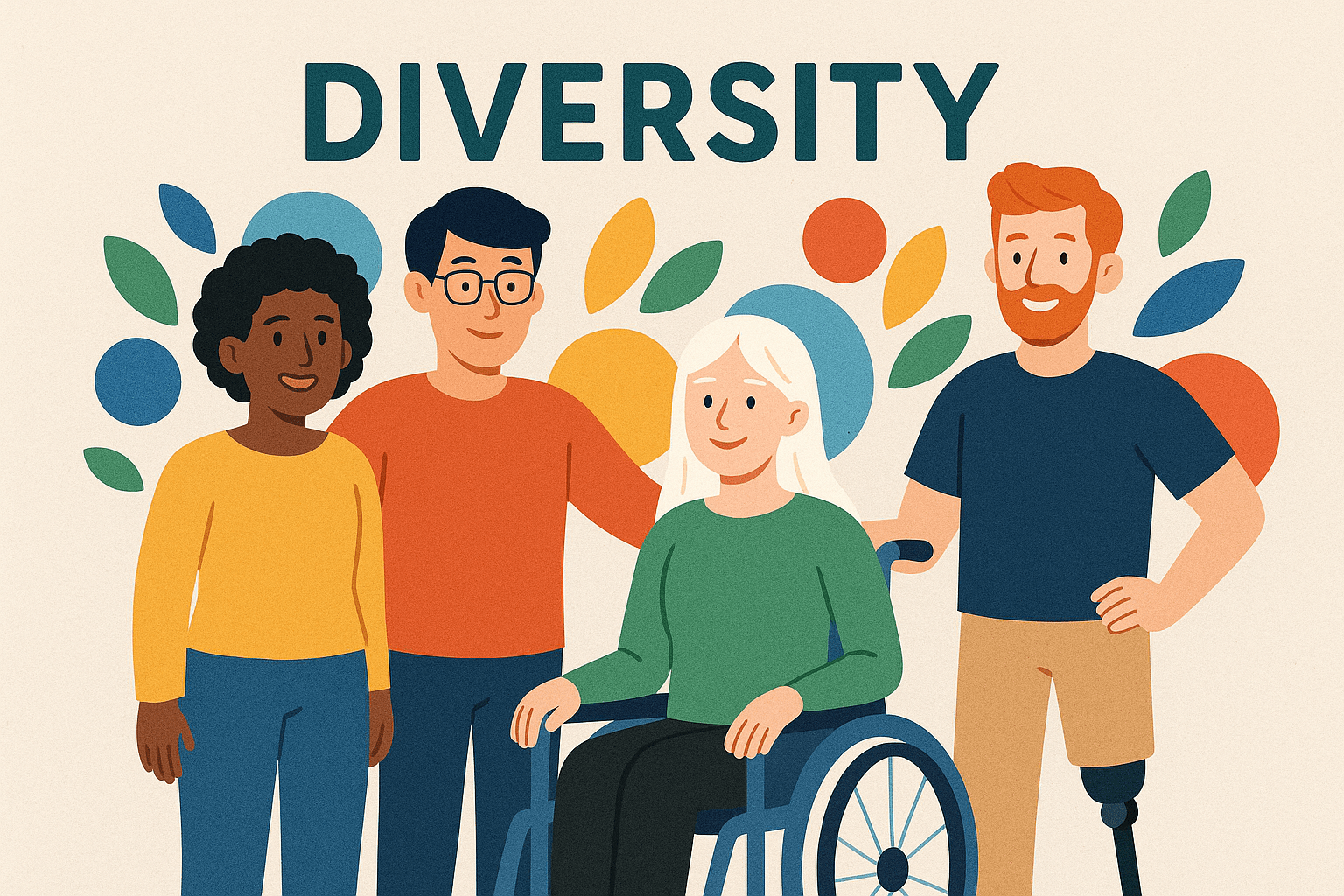 ダイバーシティとは、年齢・性別・国籍・価値観など異なる属性を持つ人々が組織内で共存している状態を指し、日本語で「多様性」と訳されます。